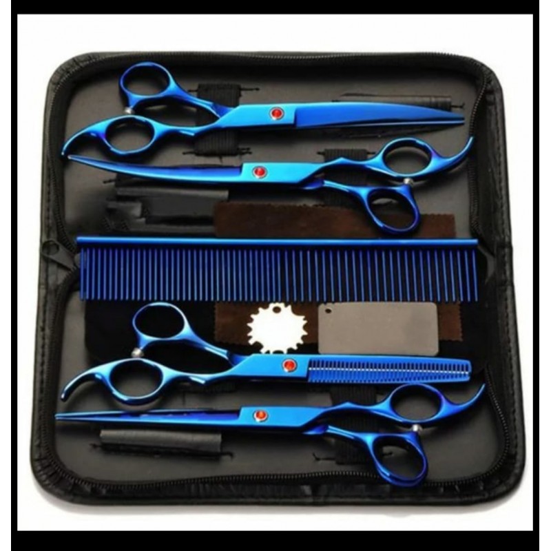 * Set de 4 tijeras 7″ 19.5cm y 1 peine