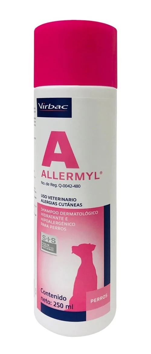 ALLERMYL está indicado en el tratamiento tópico y en la higiene regular de perros afectados por alergias y reacciones de hipersensibilidad cutánea, principalmente en aquellas agravadas por la hiperproliferación de hongos y bacterias sensibles a piroctona olamina, tales como, Malassezia pachydermatis, Staphylococcus aureus, Staphylococcus intermedius, Staphylococcus pseudintermedius y Staphylococcus epidermidis.