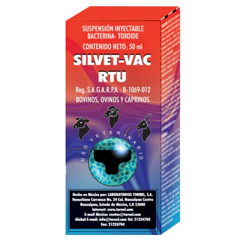 Para la prevención de la pasteurelosis neumónica, la meningoencefalitis tromboembólica, neumonías y abortos asociados con los agentes bacterianos de la fórmula. Silvet-Vac+HS RTU ® es una bacterina en suspensión inyectable estéril lista para aplicarse, que contiene cultivos completos altamente antigénicos de Mannheimia (Pasteurella) haemolytica serotipos A1 y A2 y de Pasteurella multocida tipo A e Histophilus somni, además contiene leucotoxoide de M. haemolytica, que mejora la acción protectora de la bacterina al combinar, el antígeno con el toxoide bacteriano.