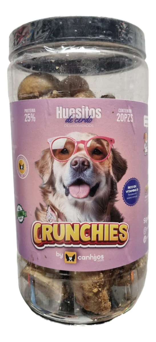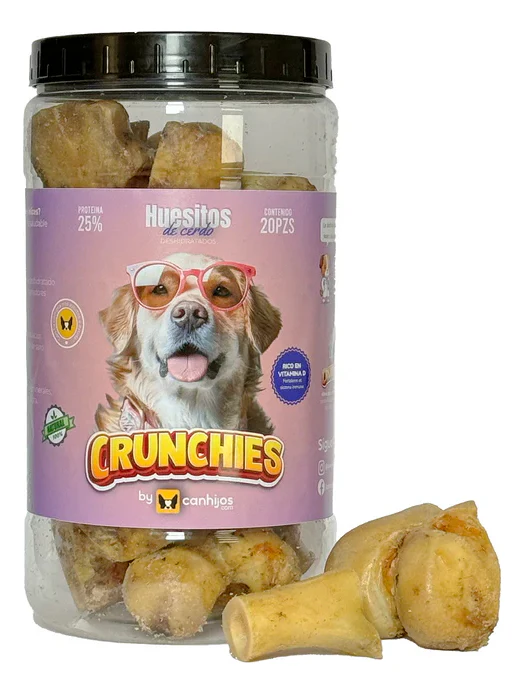 Presentamos el Snack Deshidratado para Perros – Huesitos de Cerdo de Crunchies by Canhijos, una deliciosa golosina que combina salud y sabor en cada bocado. Este producto está elaborado con un solo ingrediente, garantizando que no contiene conservadores ni químicos, lo que lo convierte en una opción ideal para una alimentación balanceada. Su textura dura no solo es irresistible para tu mascota, sino que también ayuda a mantener sus dientes limpios. Además, es hipoalergénico, lo que lo hace perfecto para perros con alergias o sensibilidades alimentarias. Con 20 unidades por envase, cada huesito ofrece un sabor a cerdo que estimula los sentidos de tu perro, asegurando que cada recompensa sea una experiencia nutritiva y placentera. ¡Dale a tu peludo el snack que se merece!