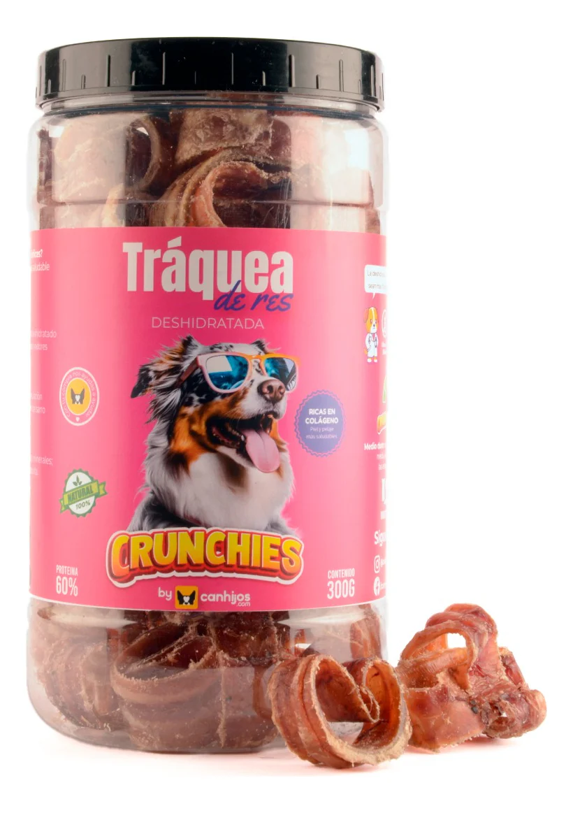 Descubre el delicioso Snack Para Perros – Tráquea Res 300g de Crunchies By Canhijos, una opción ideal para consentir a tu mascota. Estos premios de tráquea de res deshidratada son 100% naturales, lo que garantiza que tu perro reciba un bocado saludable y nutritivo. Además de ofrecer una experiencia de sabor única, estos snacks contribuyen a la salud general de tu mascota, ayudando a mantener sus articulaciones más fuertes y sus dientes más limpios. Su textura crujiente no solo es irresistible, sino que también promueve huesos más fuertes y actúa como un antiestrés. Perfectos para perros de cualquier edad y tamaño, cada mordida cuenta, haciendo de este snack una elección excepcional para el bienestar de tu compañero peludo. ¡Haz que cada momento de juego sea especial con Crunchies!