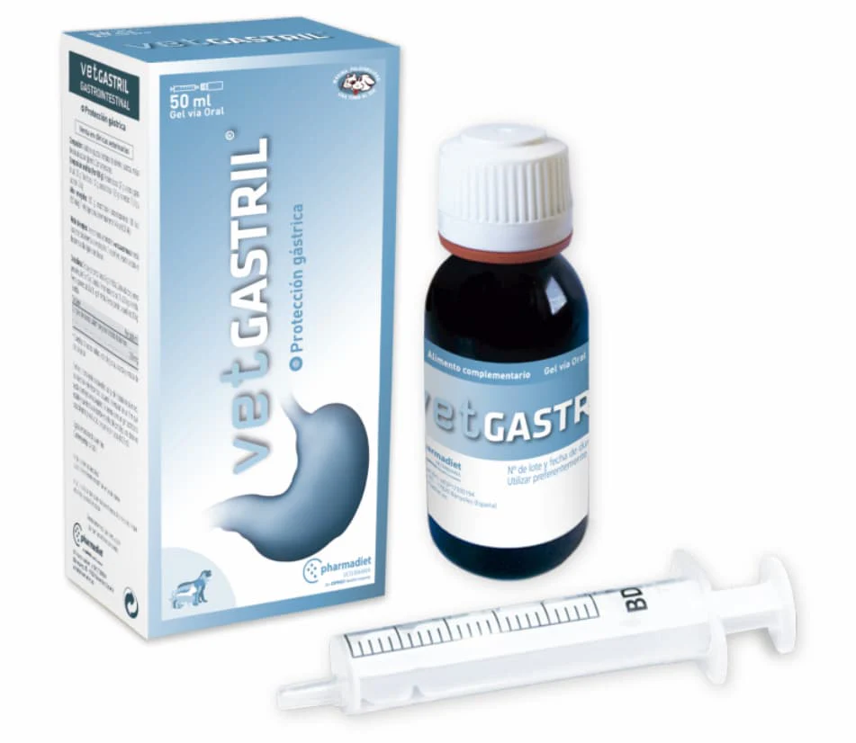 es un protector gástrico en gel para perros y gatos, que ayuda a calmar el malestar estomacal, alivia los trastornos digestivos y favorece una función intestinal adecuada.